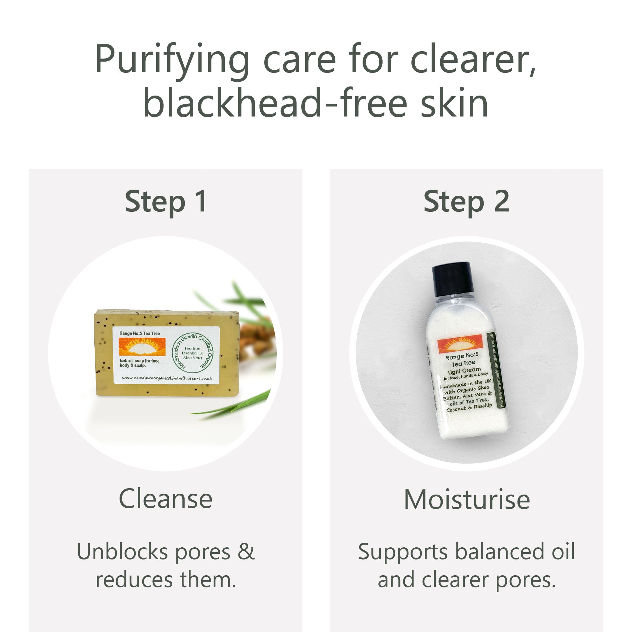 Soap + Cream: Contains a 40g Tea Tree Soap bar and 25ml Tea Tree Light Cream. Both of these products are top performers for getting rid of Blackheads and Whiteheads. With regular use they can help keep your face skin healthy and clear of Blemishes.