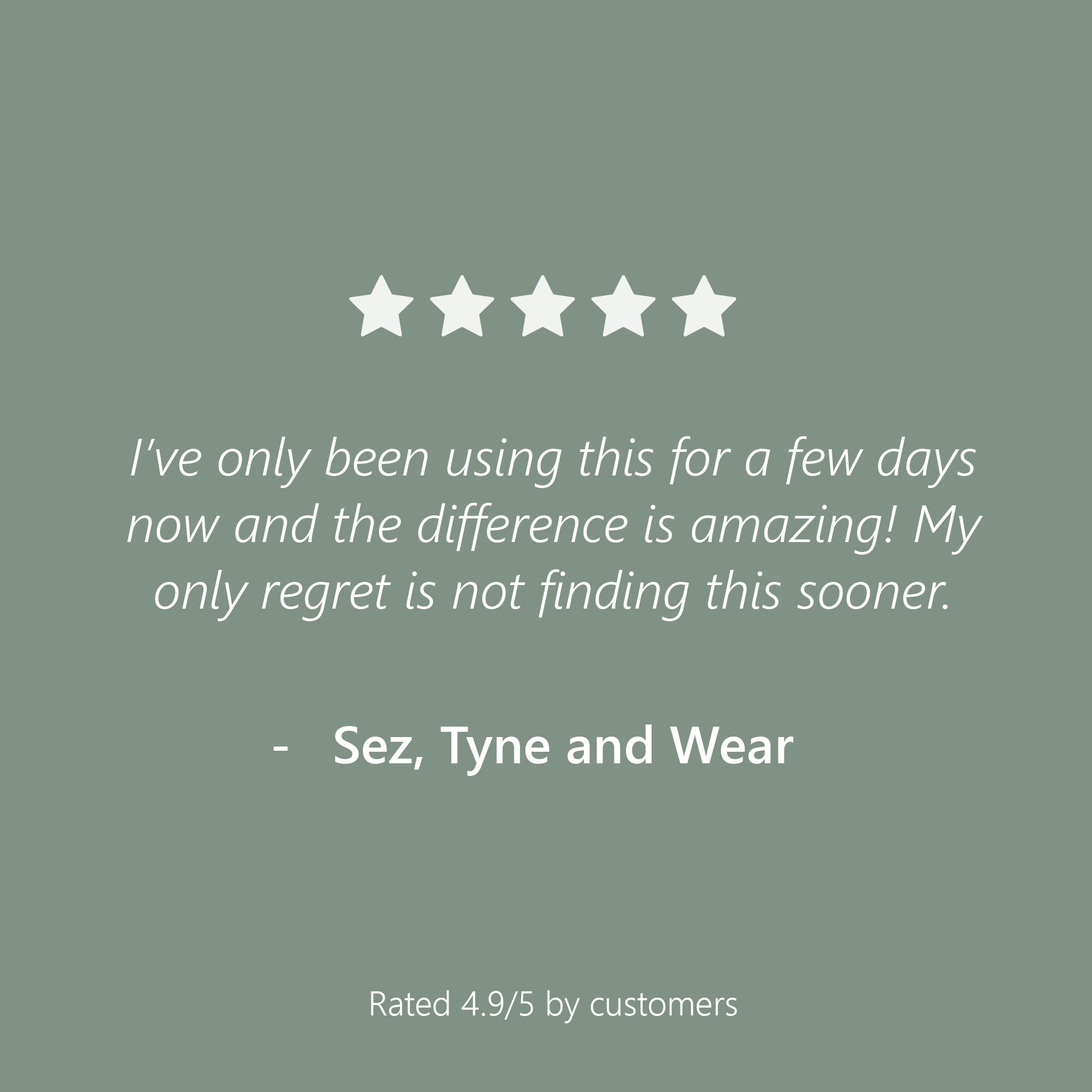 "I have only been using this for a few days now and the difference is amazing. My only regret is not finding this sooner"